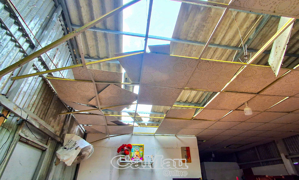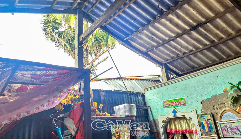 Hiện trạng tốc mái nặng của hộ ông Sơn Việt (khóm Biển Tây A).