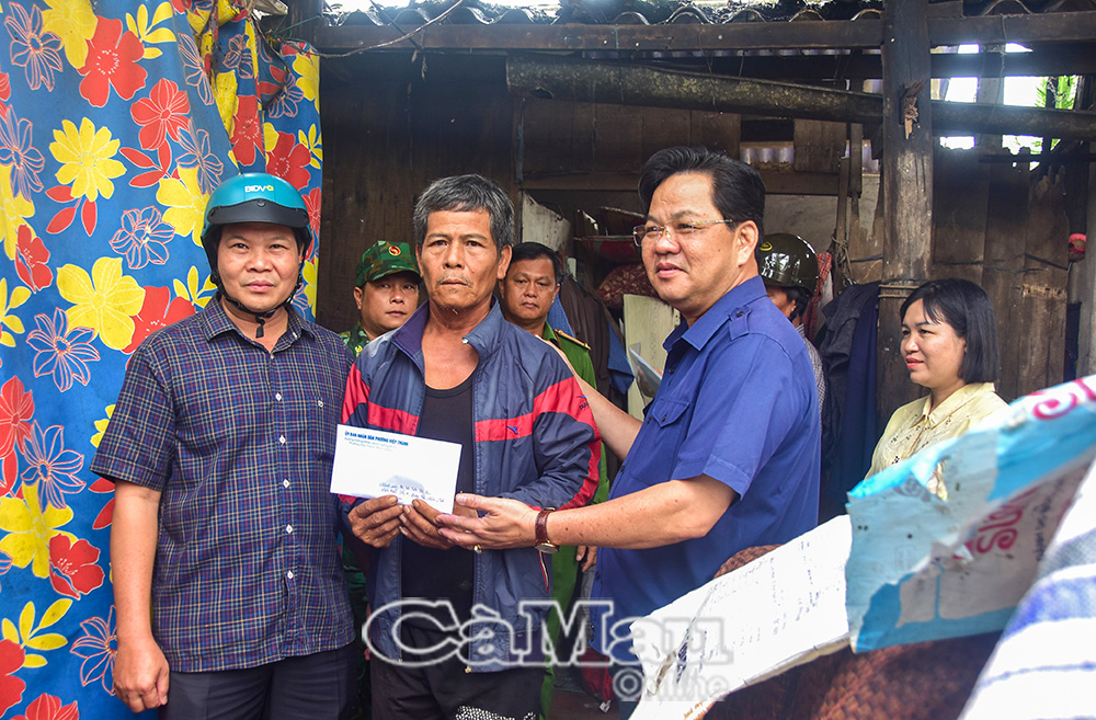 Lãnh đạo địa phương hỗ trợ trước mắt 20 triệu đồng để hộ ông Sơn Việt sửa chữa lại nhà cửa, ổn định cuộc sống.