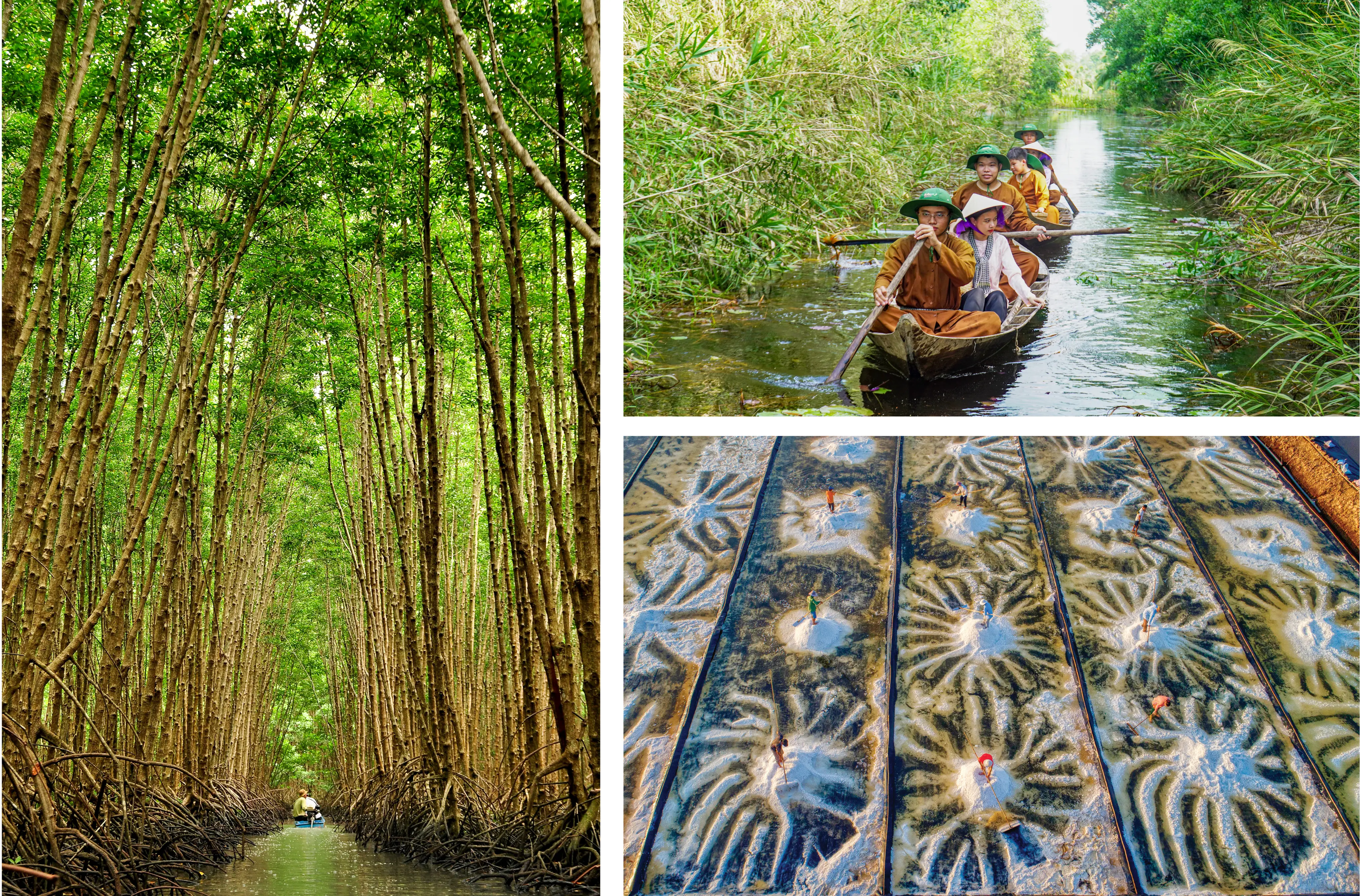 Nếu Cà Mau được biết đến như một vùng đất rừng ngập mặn rộng lớn, với Vườn quốc gia Mũi Cà Mau và Vườn quốc gia U Minh Hạ đã trở thành thương hiệu, thì Bạc Liêu lại ghi dấu ấn với hình ảnh những cánh đồng muối trắng ngút ngàn dưới nắng và gió biển. Sự khác biệt về cảnh quan này không chỉ tạo nên vẻ đẹp riêng cho mỗi vùng mà còn định hình cả phương thức sinh kế của người dân.