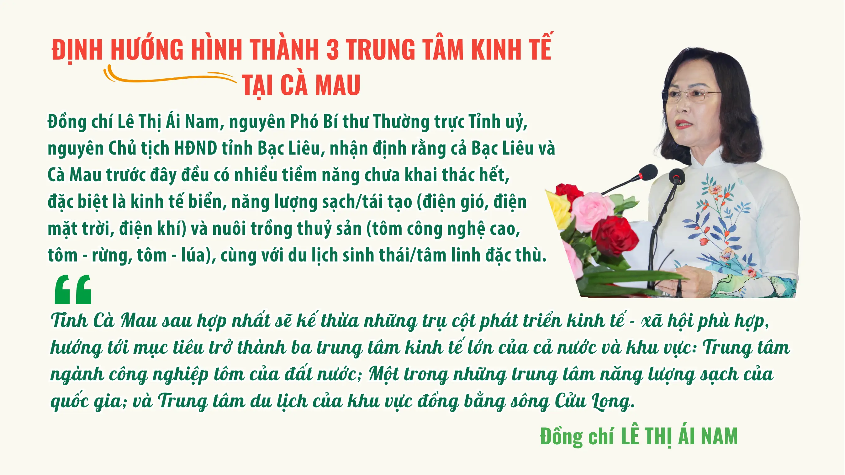 Phát triển kinh tế xanh: Tận dụng thế mạnh về năng lượng tái tạo, đặc biệt là điện gió, điện mặt trời. Đồng thời, bảo vệ và phát triển hệ sinh thái rừng ngập mặn để tạo ra một môi trường sống trong lành và bền vững.
