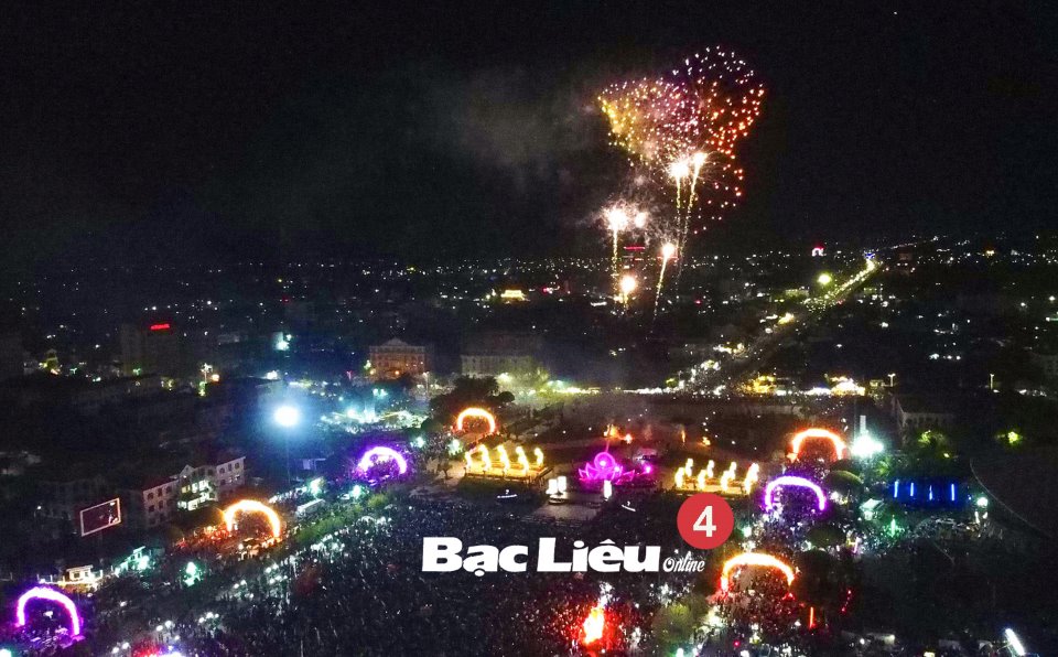 Trong thời khắc giao thừa, những giai điệu rộn ràng của chương trình nghệ thuật chào xuân Giáp Thìn ngân vang đã thổi thêm bầu không khí hồ hởi, vui tươi (ảnh 3). Đặc biệt, những tràng pháo hoa nghệ thuật rực rỡ trên bầu trời thu hút đông đảo người thưởng thức để cùng nhau chào tạm biệt năm cũ, đón chào năm mới (ảnh 4).