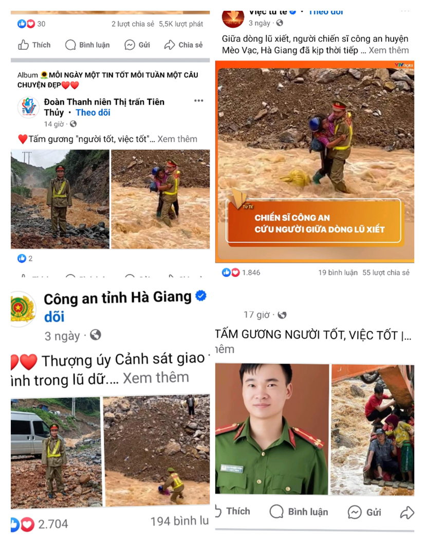 Hành động dũng cảm cứu người của Thượng úy Nguyễn Mạnh Tường được chia sẻ. Ảnh: Nguồn Facebook