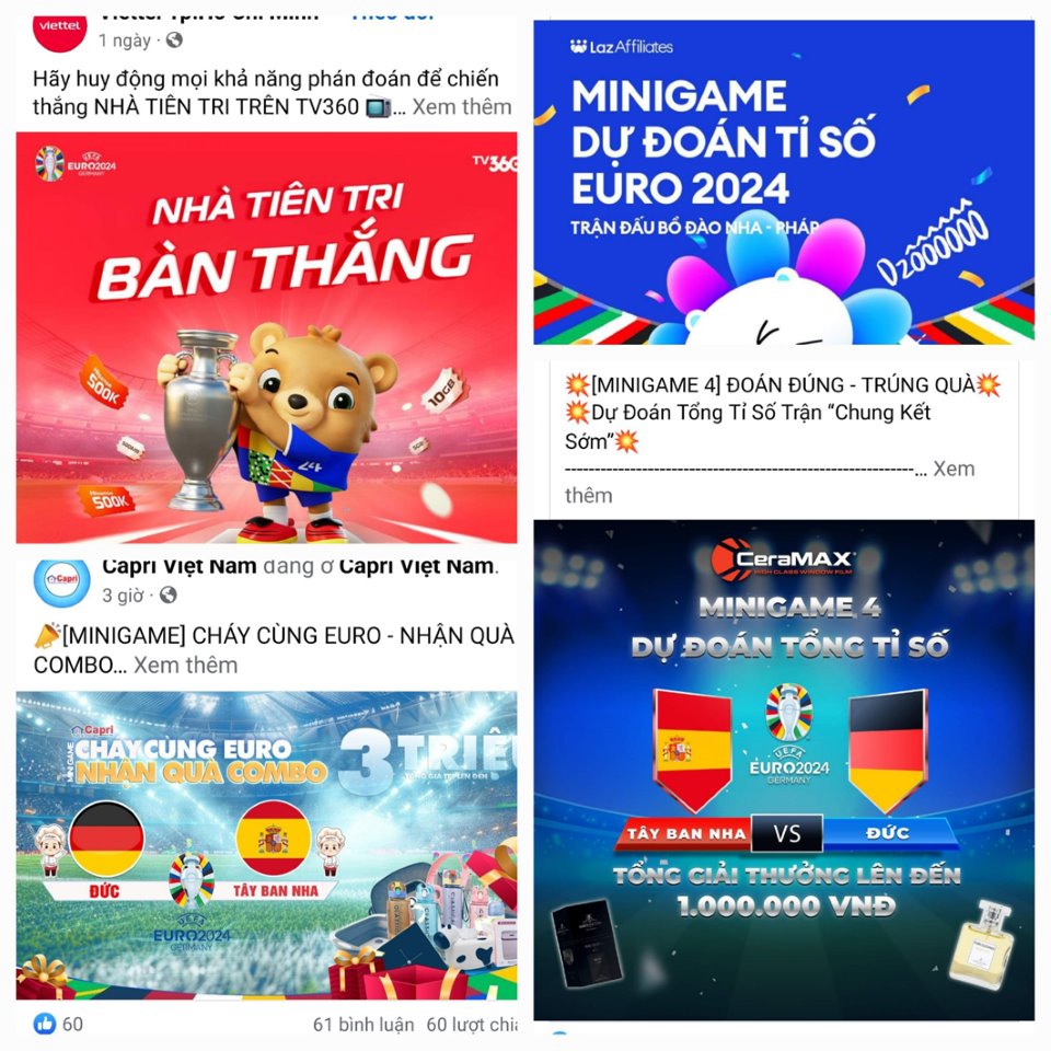 Giải vô địch bóng đá châu Âu (EURO) đang diễn ra, thu hút lượng theo dõi lớn từ người hâm mộ. Tận dụng điều đó, nhiều nhãn hàng, sàn thương mại điện tử, cửa hàng kinh doanh đưa ra chương trình ưu đãi khi dự đoán đúng kết quả của các trận đấu (mini games) thu hút sự quan tâm của đông đảo cộng đồng mạng. Người tham gia các chương trình dự đoán kết quả, tùy theo yêu cầu của các nơi mà thực hiện như: giới thiệu chương trình cho bạn bè, chia sẻ trên trang Facebook cá nhân... cuối cùng đưa ra dự đoán tỷ số cho trận đấu.