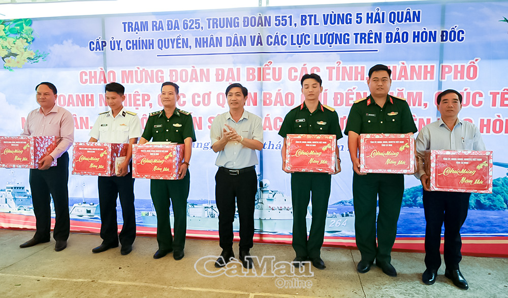 Hành trình thăm, chúc Tết cán bộ, chiến sĩ và Nhân dân các đảo Tây Nam Từ ngày 9-14/1/2026. Đoàn đã đến thăm 6 đảo tiền tiêu: Hòn Khoai, Hòn Chuối (Cà Mau), Thổ Chu, Phú Quốc, Nam Du và Hòn Đốc (An Giang). Đoàn Cà Mau có 12 thành viên do đồng chí Bùi Minh Hải, Phó Chủ tịch Uỷ ban MTTQ Việt Nam tỉnh Cà Mau làm Trưởng đoàn, đã mang theo tình cảm nồng ấm của Đất Mũi đến với các chiến sĩ nơi đảo xa. |