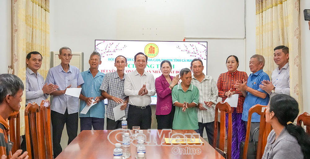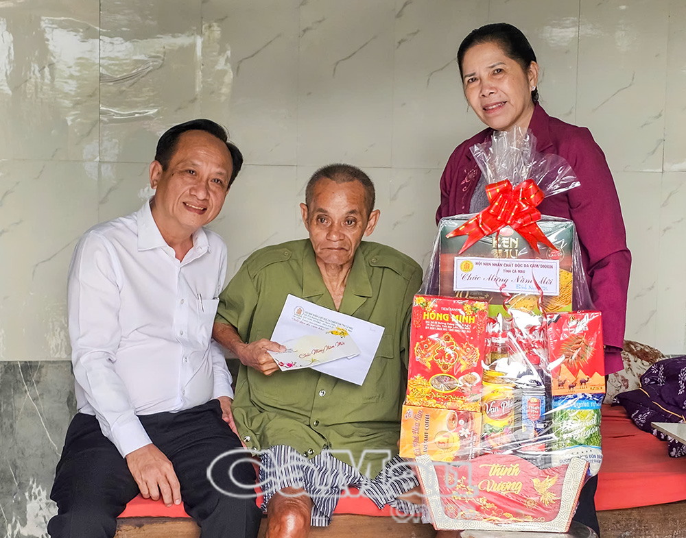 Chủ tịch HĐND tỉnh Phạm Văn Thiều và bà Võ Thị Hồng Thoại, Chủ tịch Hội Nạn nhân chất độc da cam/dioxin tỉnh Cà Mau trao quà Tết cho các nạn nhân chất độc da cam/dioxin tại Phường Lý Văn Lâm.