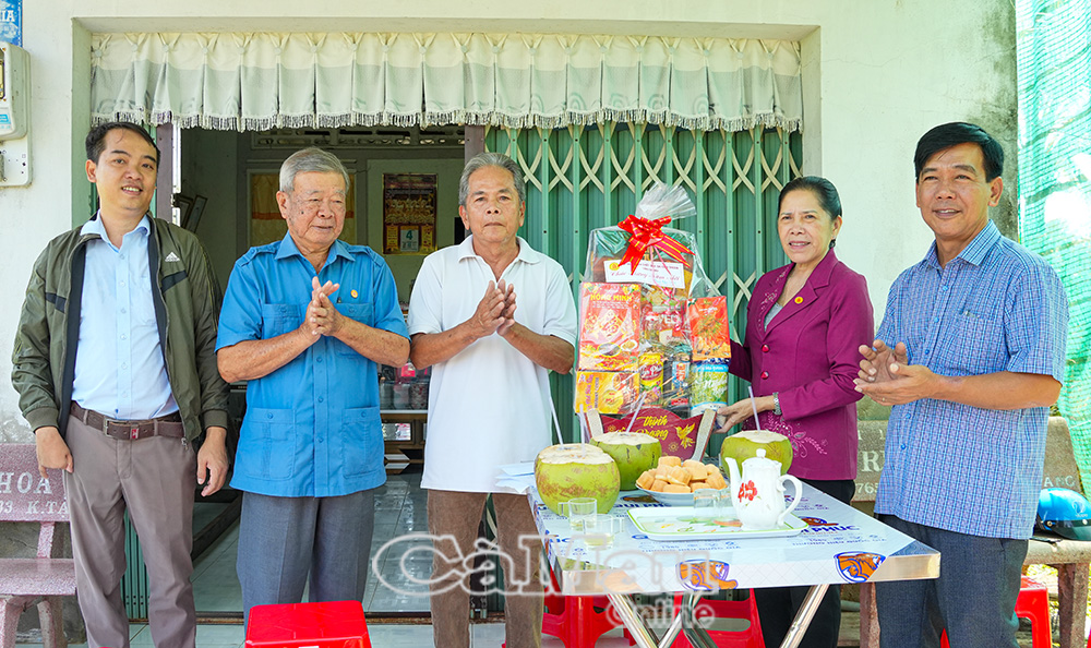 Bà Võ Thị Hồng Thoại, Chủ tịch Hội Nạn nhân chất độc da cam/dioxin tỉnh và ông Nguyễn Xuân Hùng, Chủ tịch HĐQT Quỹ nạn nhân chất độc da cam/dioxin tỉnh Cà Mau (thứ hai, từ trái sang) đến trao quà Tết Nguyên đán cho ông Bùi Hoàng Nô, ấp Đức An, Xã Lương Thế Trân.