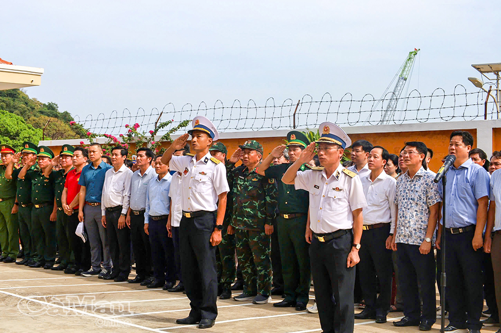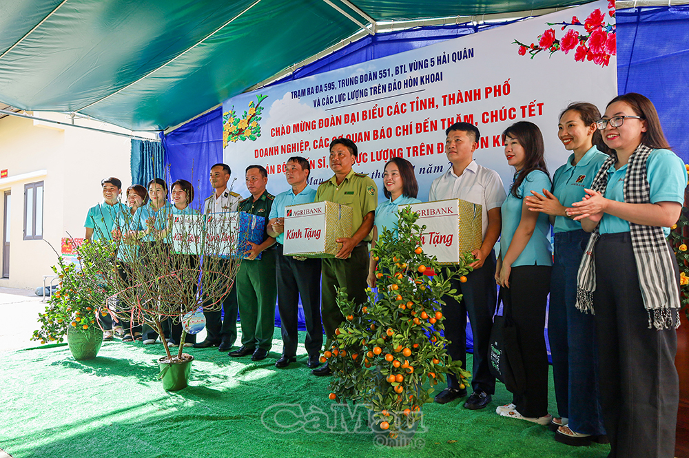 Tại điểm đến, các đại biểu cùng cán bộ, chiến sĩ Trạm Rađa 595 trang nghiêm thực hiện nghi lễ chào cờ và tuyên thệ 10 lời thề danh dự. Trên cụm đảo Hòn Khoai, các đoàn công tác đã ân cần thăm hỏi, chúc Tết và trao tặng nhiều phần quà Xuân từ đất liền tới cán bộ, chiến sĩ đang làm nhiệm vụ trên cụm đảo.