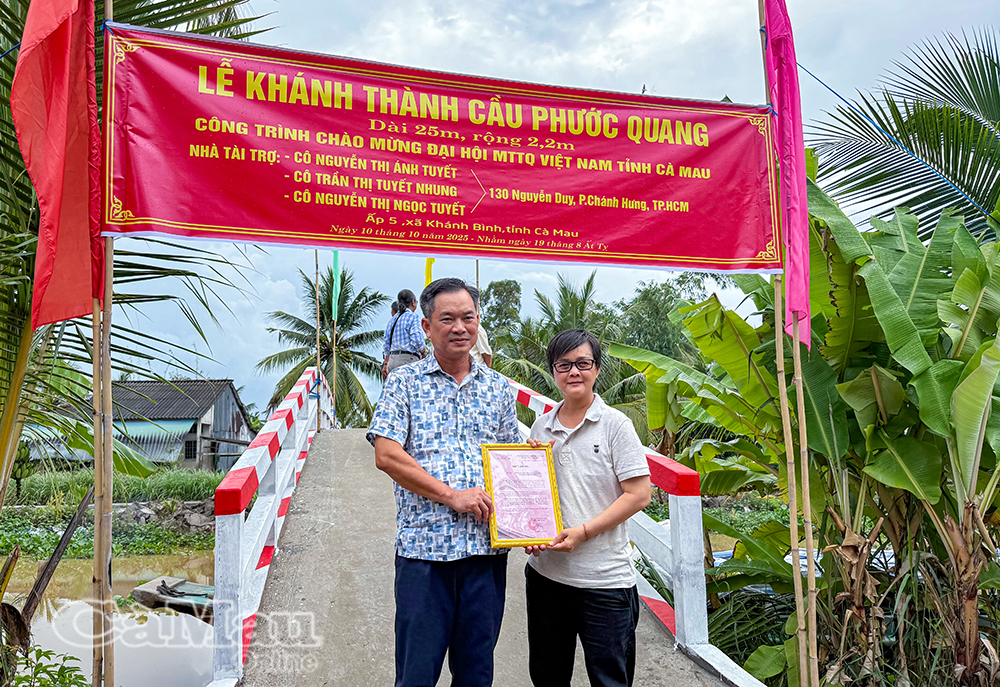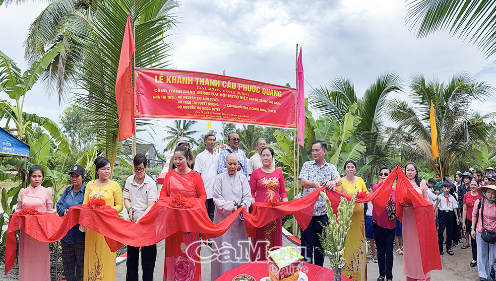 Sáng 10/10, tại ấp 5, xã Khánh Bình (tỉnh Cà Mau), Ban Thường trực Uỷ ban MTTQ Việt Nam tỉnh Cà Mau phối hợp với Nhóm từ thiện Hoa Tình Thương (TP Hồ Chí Minh) và chính quyền địa phương tổ chức Lễ khánh thành, đưa vào sử dụng cầu giao thông Phước Quang.