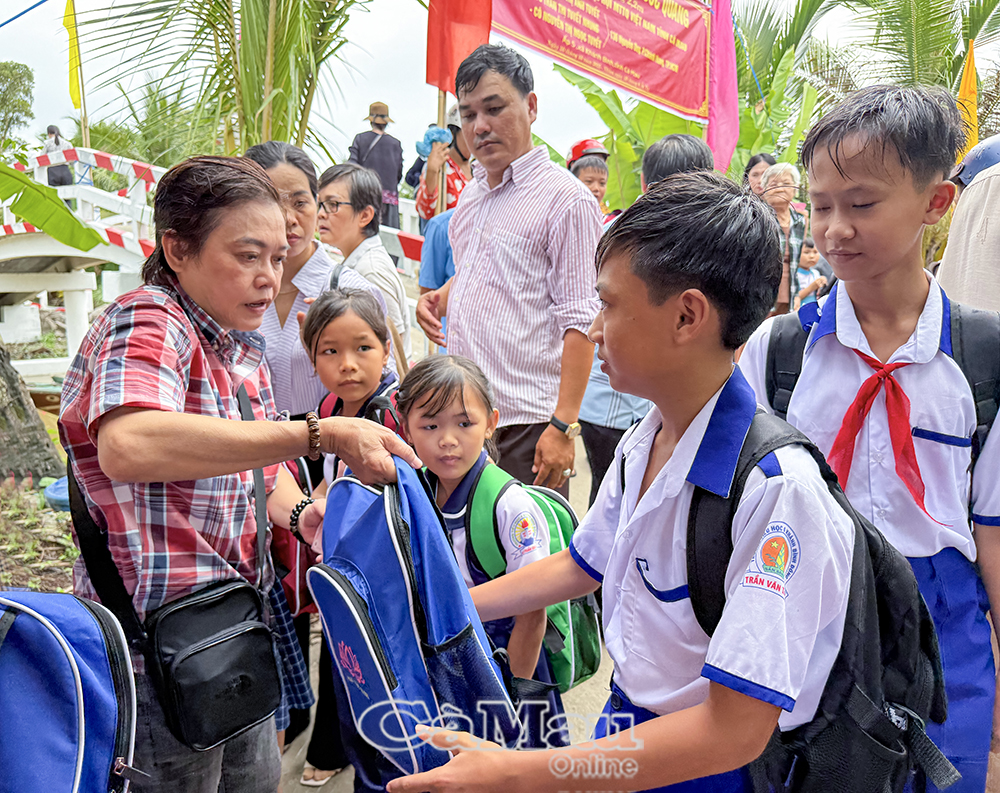 Mạnh thường quân trao 50 suất quà cho học sinh nghèo vượt khó trên địa bàn xã Khánh Bình.