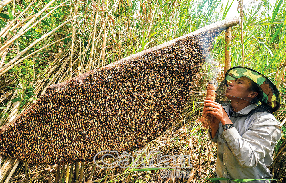 Ăn ong mật trong rừng U Minh Hạ. Ảnh: HUỲNH LÂM