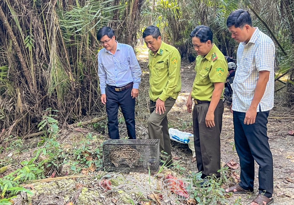 Các đơn vị đưa cá thể mèo vào Khu Bảo tồn loài - sinh cảnh Vườn chim Bạc Liêu để thả về môi trường tự nhiên.