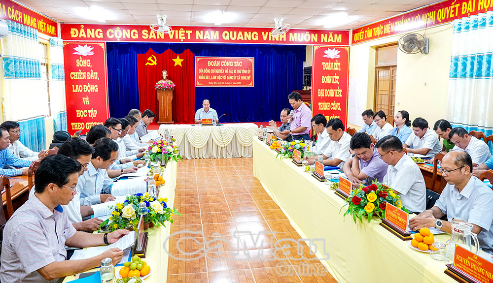 Phát biểu tại buổi làm việc, Bí thư Tỉnh uỷ Nguyễn Hồ Hải ghi nhận nỗ lực của Đảng bộ và Nhân dân Hưng Mỹ, yêu cầu địa phương tiếp tục chủ động tháo gỡ khó khăn, phát huy tiềm năng mô hình tôm - lúa, nâng cao chất lượng cải cách hành chính và phục vụ người dân.