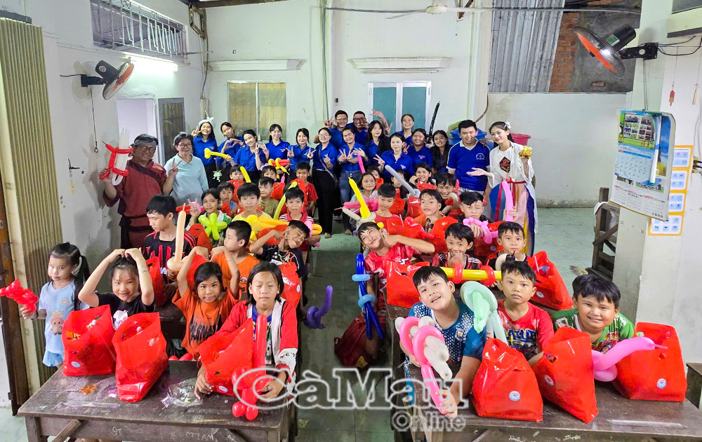 Đội Công tác xã hội Trường Đại học Bình Dương - Phân hiệu Cà Mau tổ chức trung thu ấm áp tại Lớp học tình thương Phường 6.