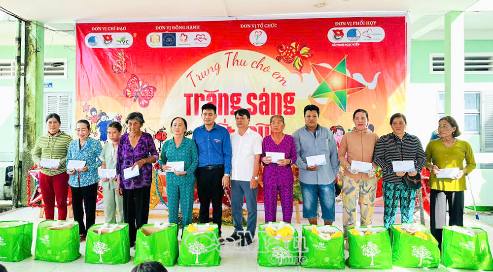 Ban Tổ chức chương trình cùng lãnh đạo địa phương trao quà trung thu cho các em học sinh.