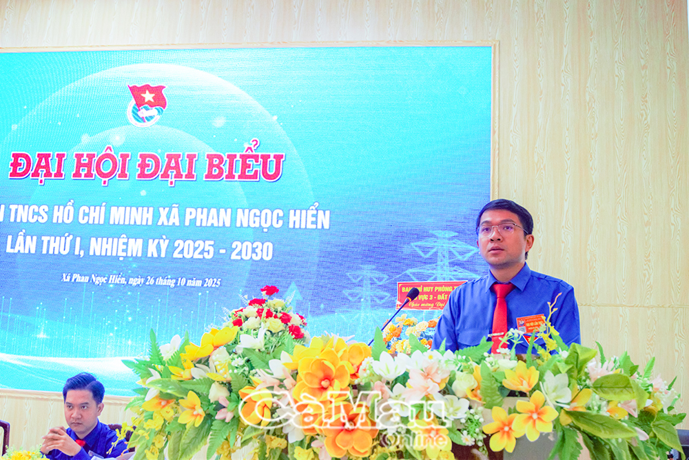 Báo Cà Mau Phát biểu chỉ đạo tại Đại hội đại biểu Đoàn TNCS Hồ Chí Minh xã Phan Ngọc Hiển lần thứ I, nhiệm kỳ 2025-2030, ngày 26/10, đồng chí Trần Đăng Khoa, Phó Bí thư Thường trực Tỉnh đoàn Cà Mau, ghi nhận và đánh giá cao nỗ lực của tuổi trẻ xã Phan Ngọc Hiển trong nhiệm kỳ qua; đồng thời đề nghị Đoàn xã tiếp tục phát huy tinh thần cống hiến, vai trò tiên phong, xung kích của thanh niên trên các lĩnh vực phát triển kinh tế - xã hội, chuyển đổi số, khởi nghiệp sáng tạo, phát triển kinh tế tri thức, đảm bảo quốc phòng - an ninh và hội nhập quốc tế; xây dựng lớp thanh niên “vừa hồng, vừa chuyên”, bản lĩnh, tri thức, kỹ năng số, thích ứng cao trong bối cảnh mới.