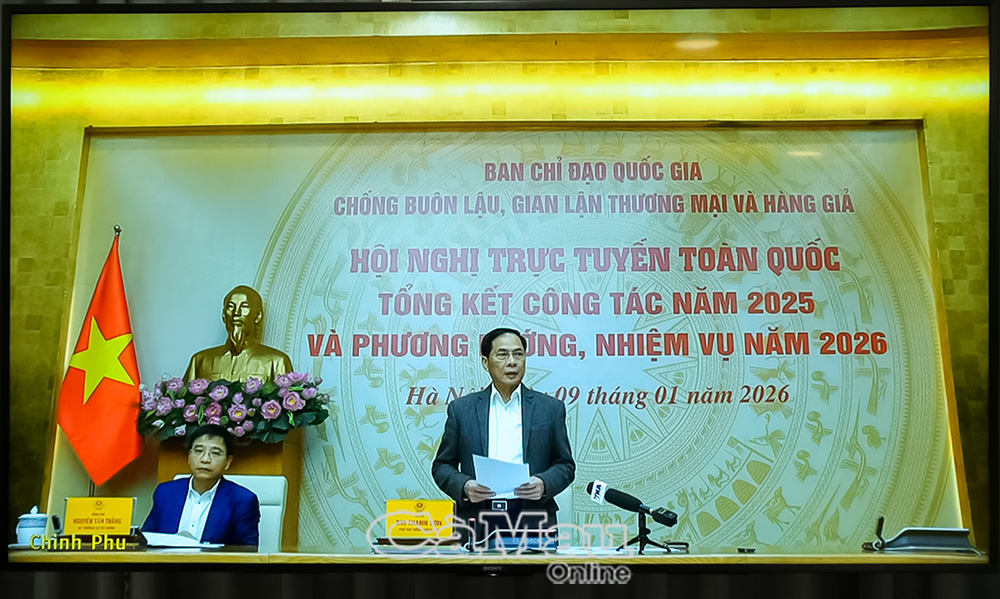 Báo Cà Mau Sáng 9/1, Phó Thủ tướng Chính phủ Bùi Thanh Sơn, Trưởng Ban Chỉ đạo 389 Quốc gia, chủ trì hội nghị trực tuyến toàn quốc tổng kết công tác phòng, chống buôn lậu, gian lận thương mại và hàng giả năm 2025; triển khai nhiệm vụ năm 2026.