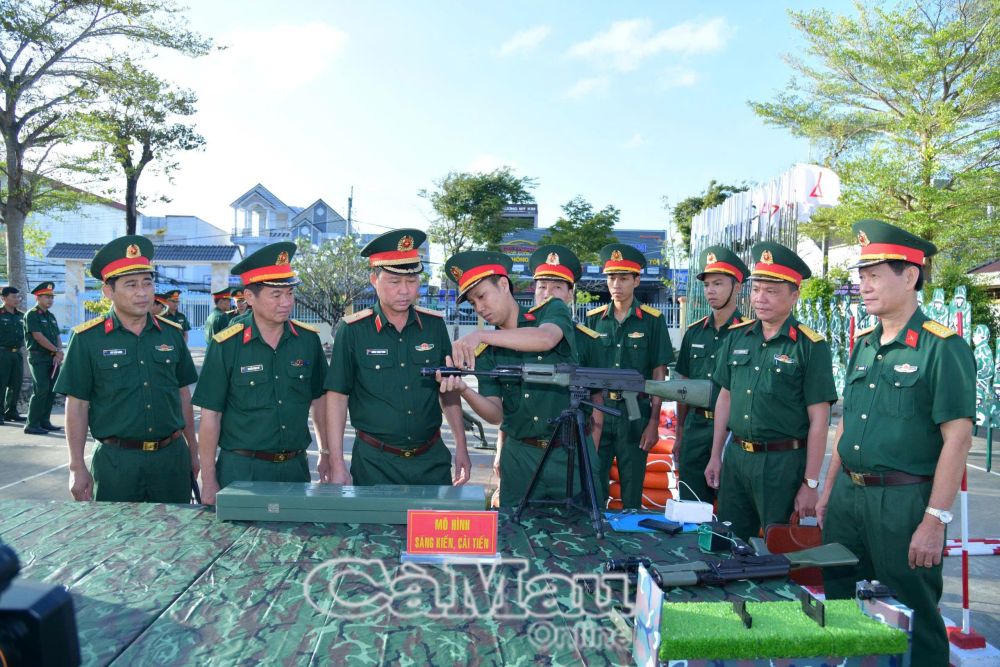 Thiếu tướng Trương Thanh Phong (thứ ba từ trái sang), Phó Tham mưu trưởng Quân khu, kiểm tra mô hình, học cụ huấn luyện tại Bộ CHQS tỉnh Cà Mau. (Ảnh minh hoạ)