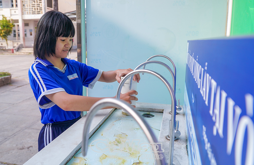Việc đầu tư hệ thống nước uống sạch góp phần bảo vệ sức khỏe học sinh.