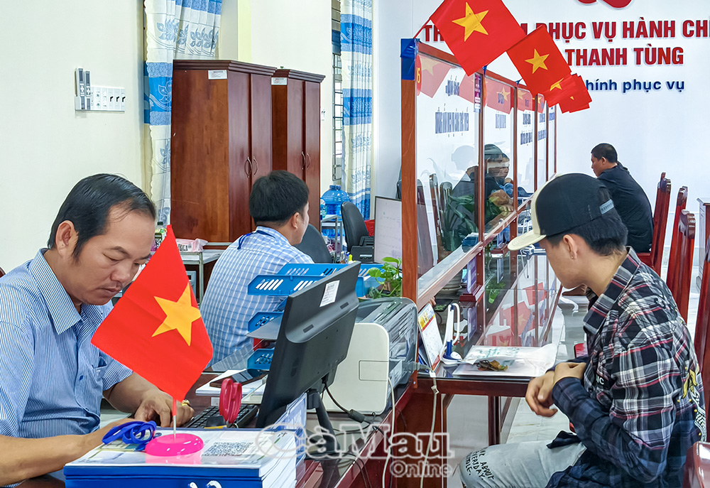 Trung tâm Phục vụ hành chính công xã Thanh Tùng giải quyết các TTHC cho người dân.