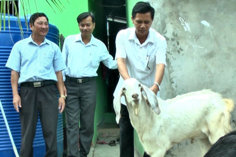 | Ông Hồ Xuân Việt, Bí thư Huyện uỷ, Chủ tịch HĐND huyện Thới Bình tham quan mô hình nuôi dê của nông dân xã Tân Lộc Đông. |