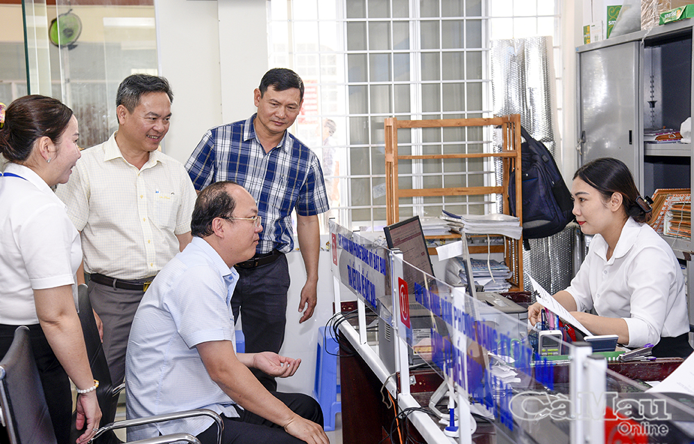 Bí thư Tỉnh uỷ thăm hỏi người dân về hiệu quả, mức độ hài lòng đối với Trung tâm Phục vụ hành chính công xã Vĩnh Lợi.