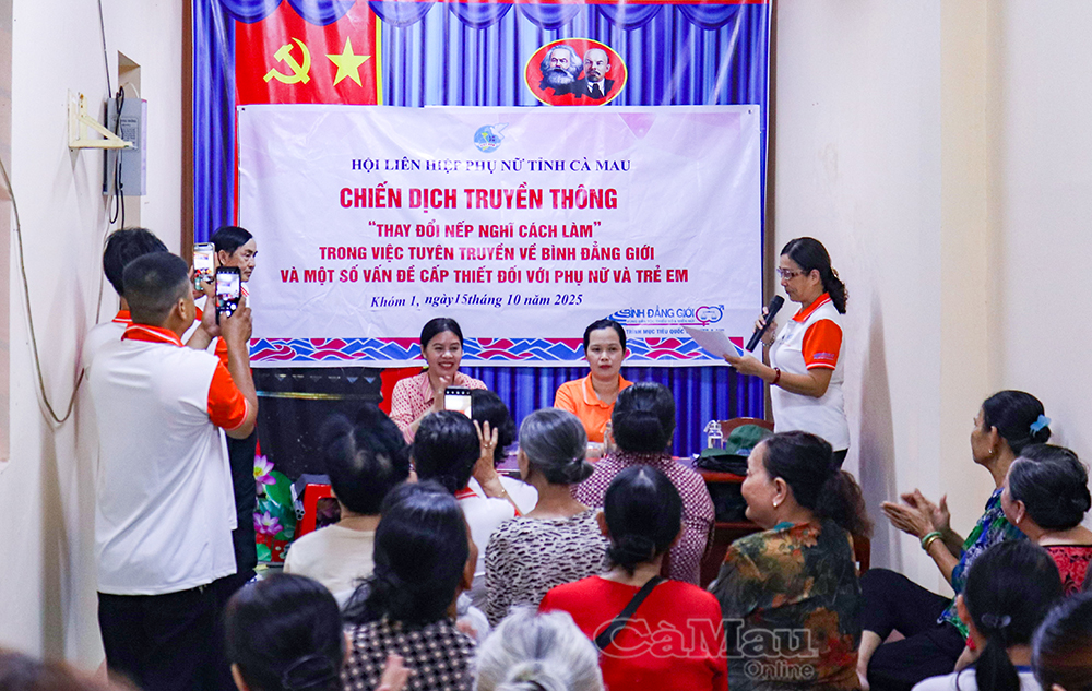 Báo Cà Mau Thực hiện Dự án 8 “Thực hiện bình đẳng giới và giải quyết những vấn đề cấp thiết đối với phụ nữ và trẻ em” thuộc Chương trình Mục tiêu quốc gia phát triển kinh tế - xã hội vùng đồng bào dân tộc thiểu số và miền núi, thời gian qua, Hội Liên hiệp Phụ nữ (LHPN) tỉnh Cà Mau đã triển khai nhiều hoạt động thiết thực nhằm nâng cao kỹ năng tuyên truyền phòng, chống bạo lực gia đình và thúc đẩy bình đẳng giới trong cộng đồng.