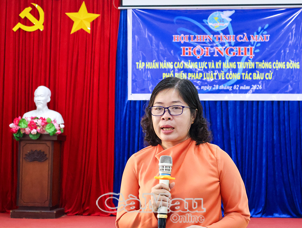 Báo Cà Mau Sáng 28/2, tại xã Năm Căn, Hội Liên hiệp Phụ nữ tỉnh Cà Mau tổ chức hội nghị tập huấn nâng cao năng lực, kỹ năng truyền thông cộng đồng về pháp luật bầu cử cho 50 cán bộ, hội viên phụ nữ trên địa bàn.