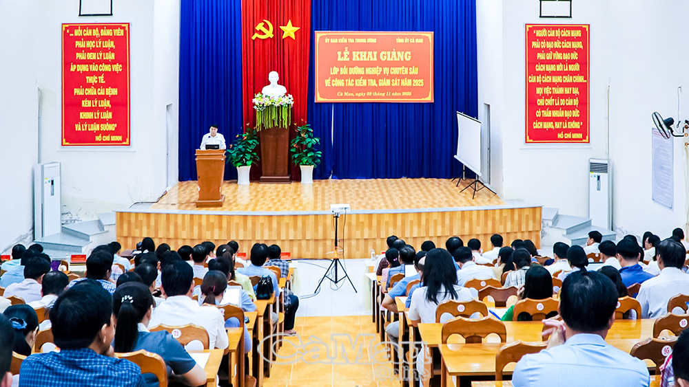 Báo Cà Mau Sáng 3/11, tại Trường Chính trị tỉnh, Uỷ ban Kiểm tra (UBKT) Trung ương phối hợp với Tỉnh uỷ Cà Mau tổ chức khai giảng lớp bồi dưỡng nghiệp vụ chuyên sâu về công tác kiểm tra, giám sát năm 2025, dành cho cán bộ UBKT Tỉnh uỷ và 68 UBKT các Đảng uỷ trực thuộc.