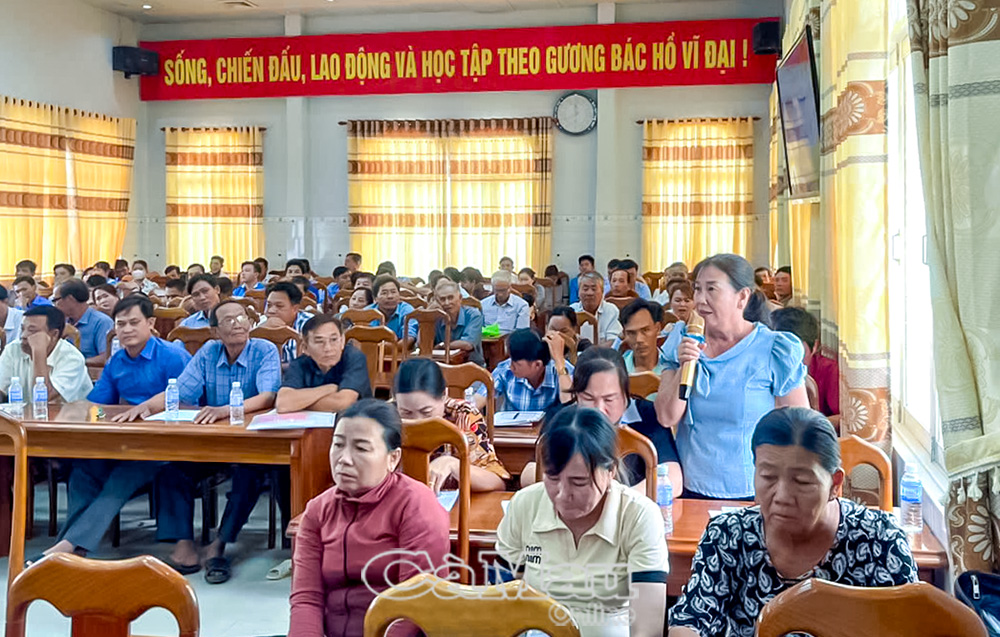 Đại diện cán bộ chủ chốt ấp, khóm phát biểu tại hội nghị.