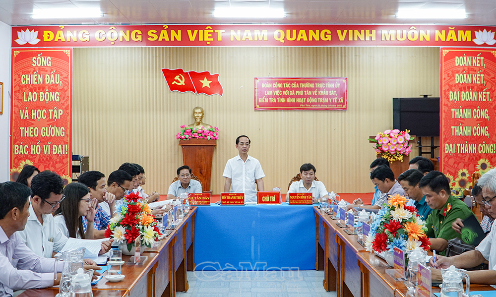 Phát biểu tại buổi làm việc với hai xã Cái Đôi Vàm và Phú Tân, đồng chí Hồ Thanh Thuỷ, Phó Bí thư Tỉnh uỷ, Trưởng đoàn công tác, đề nghị các địa phương nêu cao tinh thần trách nhiệm, chủ động phát huy vai trò của trạm y tế cơ sở trong chăm sóc sức khoẻ Nhân dân. Đồng chí yêu cầu các sở, ban, ngành liên quan tiếp tục nắm bắt thực tế, ghi nhận đề xuất, kiến nghị của địa phương và tham mưu kịp thời cho Thường trực Tỉnh uỷ để tháo gỡ khó khăn, nâng cao hiệu quả hoạt động trạm y tế tuyến xã.