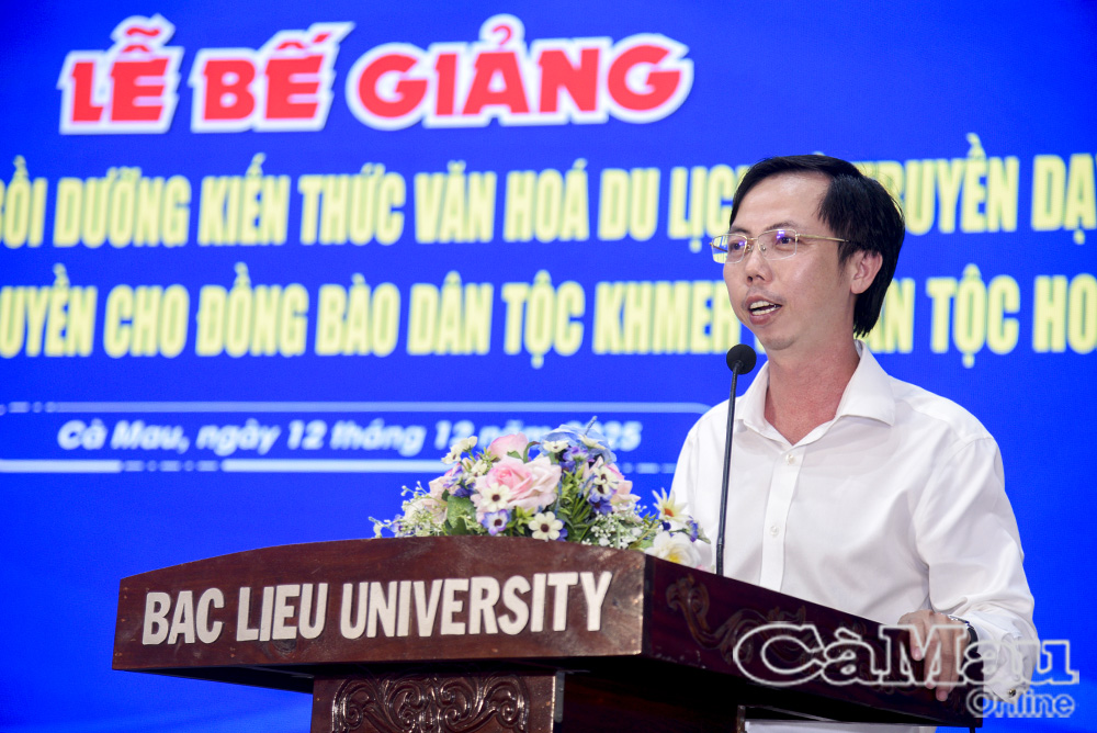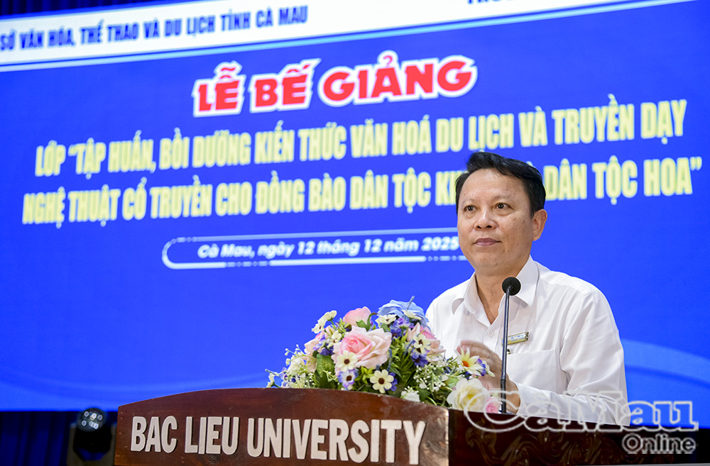 Báo Cà Mau Chiều 12/12, Sở Văn hoá, Thể thao và Du lịch phối hợp Trường Đại học Bạc Liêu tổ chức lễ bế giảng lớp tập huấn, bồi dưỡng kiến thức văn hoá, du lịch và truyền dạy nghệ thuật cổ truyền cho đồng bào dân tộc Hoa và dân tộc Khmer.