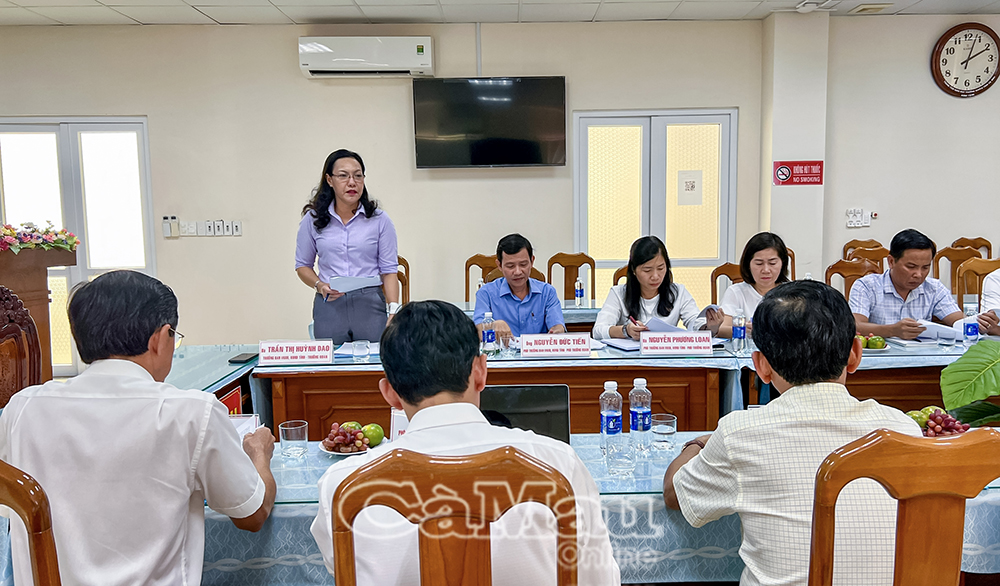 Bà Trần Thị Huỳnh Dao, Trưởng Ban Văn hóa - Xã hội HĐND tỉnh, phát biểu tại buổi làm việc.