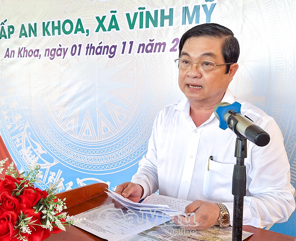 Phát biểu tại ngày hội, Phó Chủ tịch UBND tỉnh Huỳnh Chí Nguyện biểu dương tinh thần đoàn kết, nỗ lực của cán bộ và Nhân dân ấp An Khoa; đồng thời đề nghị địa phương tiếp tục phát huy vai trò Mặt trận, đoàn thể, chăm lo đời sống Nhân dân, đẩy mạnh phong trào thi đua, xây dựng khu dân cư sáng - xanh - sạch - đẹp, giữ vững nếp sống văn minh, an toàn. Phó Chủ tịch UBND tỉnh tin tưởng, với truyền thống đoàn kết và tinh thần cần cù, sáng tạo, Nhân dân ấp An Khoa sẽ tiếp tục đạt nhiều kết quả mới, góp phần xây dựng xã Vĩnh Mỹ đạt chuẩn nông thôn mới kiểu mẫu.