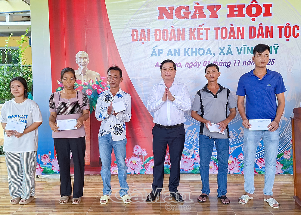 Dịp này, Uỷ ban MTTQ Việt Nam tỉnh Cà Mau tặng Bằng khen cho tập thể khu dân cư ấp Tân Tạo; UBND xã Vĩnh Lợi khen thưởng 5 cá nhân tiêu biểu trong phong trào thi đua năm 2025.