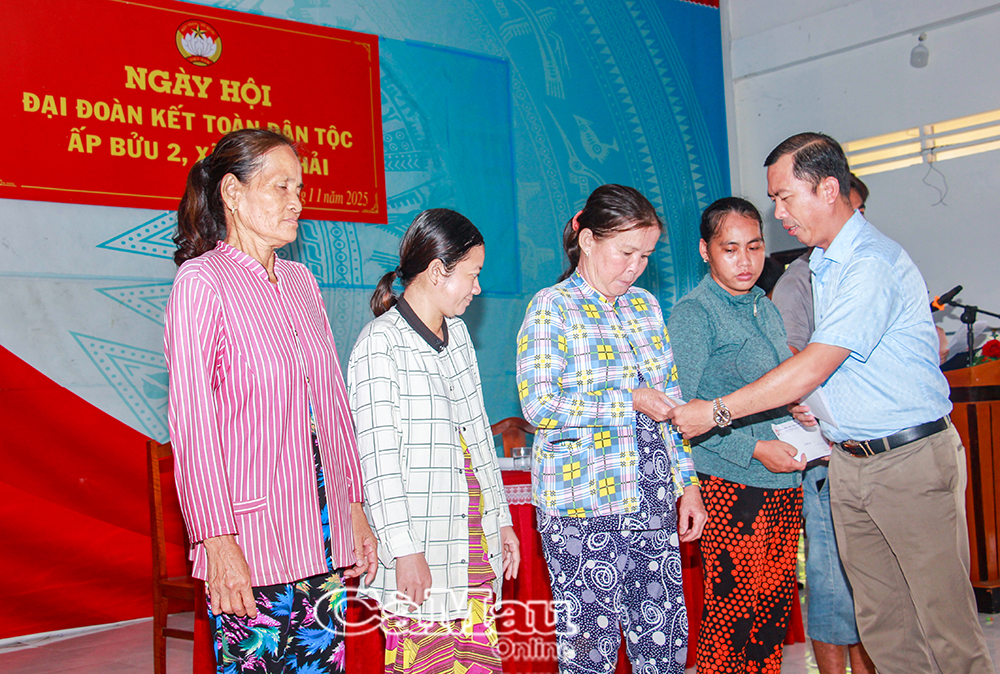 Sáng 1/11, đồng chí Lê Thanh Triều, Uỷ viên Ban Thường vụ Tỉnh uỷ, Phó Chủ tịch Thường trực Uỷ ban MTTQ Việt Nam tỉnh Cà Mau đến dự Ngày hội Đại đoàn kết toàn dân tộc tại ấp Bửu 2, xã Đông Hải.