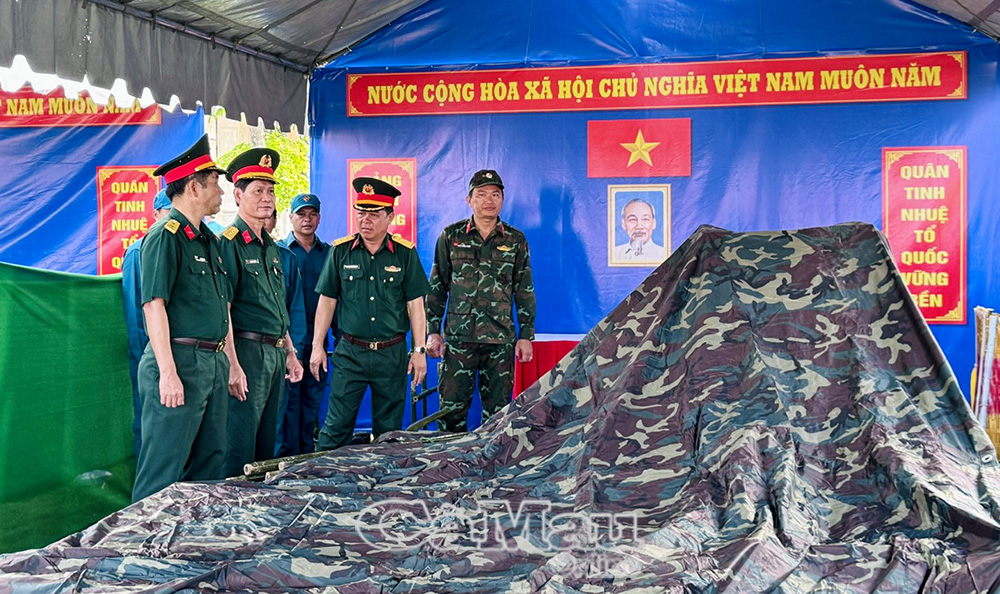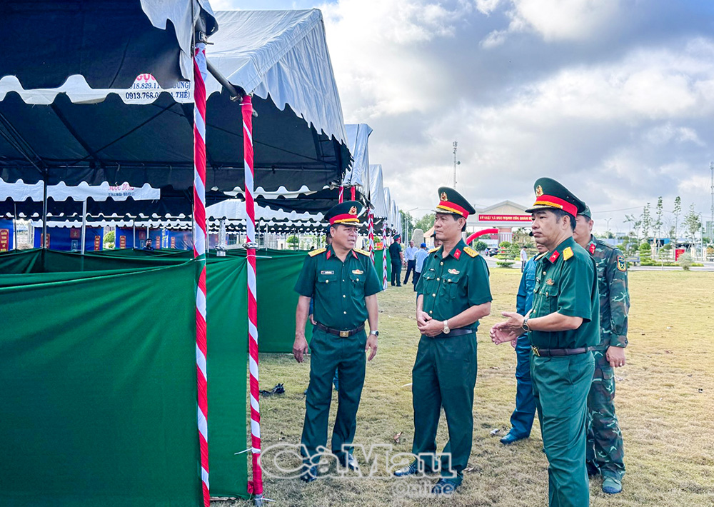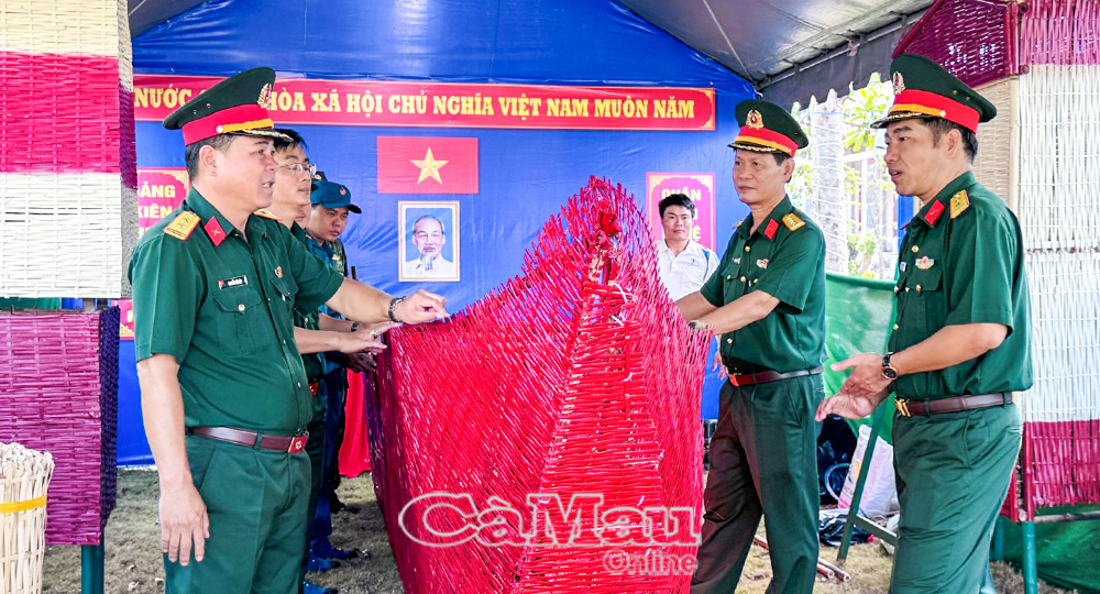 Thủ trưởng Bộ Chỉ huy Quân sự tỉnh Cà Mau cùng Thủ trưởng Ban Chỉ huy Phòng thủ khu vực 1 kiểm tra công tác trang trí tiểu trại, bảo đảm chuẩn bị chu đáo cho Hội trại tòng quân năm 2026.