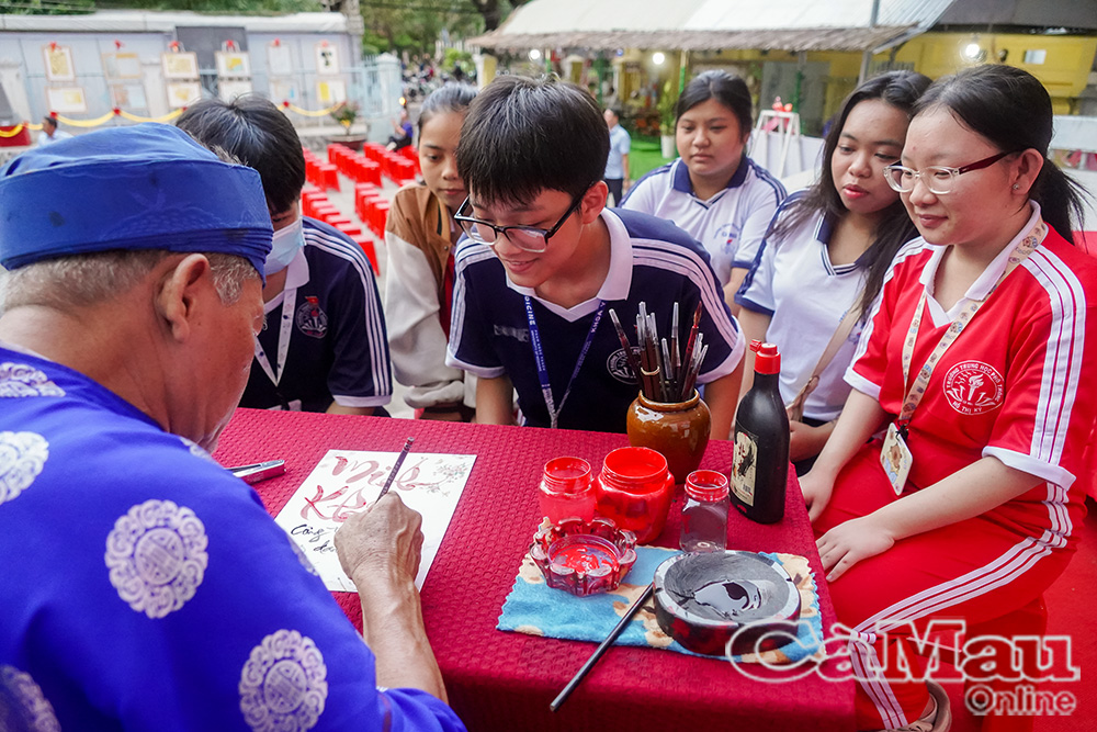 Không ít bạn trẻ thích thú tìm đến ông đồ để xin chữ cầu may mắn.