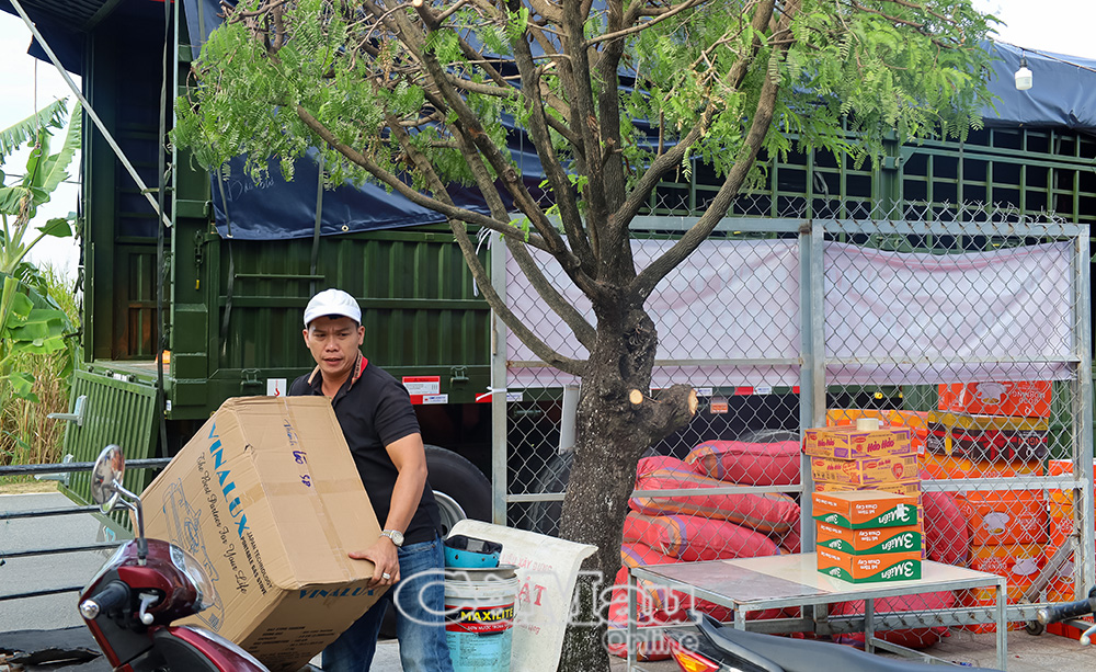 Người dân địa phương gửi những thùng quà đến điểm tập kết, thể hiện sự chung tay chia sẻ trong lúc khó khăn.