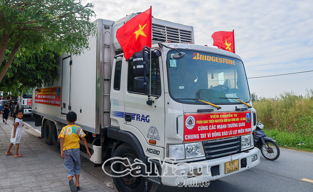 Những chuyến xe đầy quà, lăn bánh từ xã Sông Đốc, hướng về đồng bào Phú Yên trong chiều 28/11, mang theo bao tấm lòng sẻ chia của người dân Cà Mau.