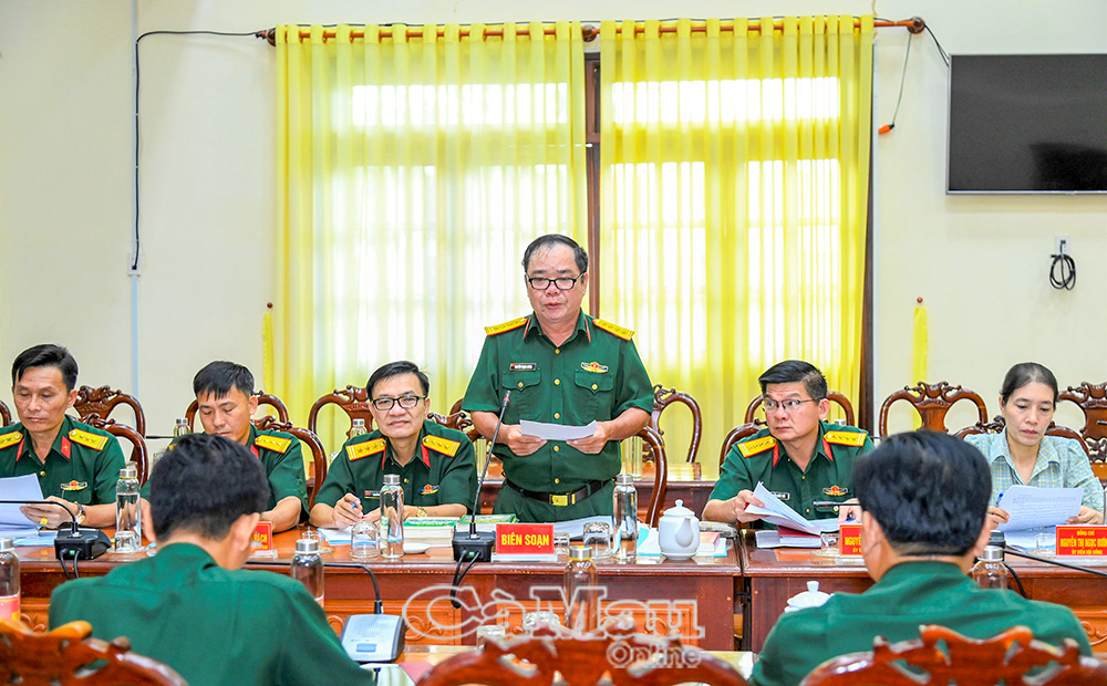 Báo Cà Mau Công trình được Hội đồng Khoa học lịch sử quân sự, Bộ Chỉ huy Quân sự (CHQS) tỉnh Cà Mau, tổ chức hội nghị nghiệm thu vào chiều 23/12. Đại tá Võ Thành Lê, Chính uỷ Bộ CHQS tỉnh, Chủ tịch Hội đồng, chủ trì hội nghị.