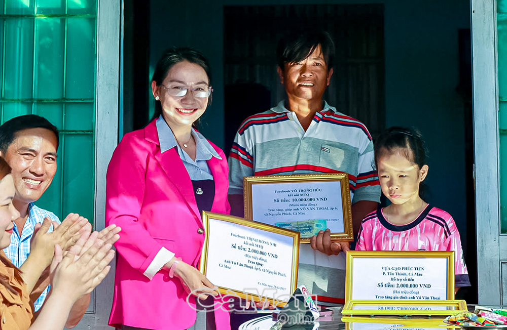 Dịp này, nhiều mạnh thường quân tiếp tục chung tay hỗ trợ: Nhóm Thiện nguyện Thiện Tài (bạn Võ Trọng Hữu kết nối), Nhóm Sức sống tuổi trẻ Cà Mau, Vựa gạo Phúc Tiến (phường Tân Thành) cùng các tấm lòng hảo tâm đã trao thêm 14 triệu đồng, sữa và quà bánh cho bé Thư. Số tiền không lớn, những món quà giản dị nhưng ấm áp nghĩa tình, tiếp thêm động lực giúp gia đình vượt qua giai đoạn khó khăn.