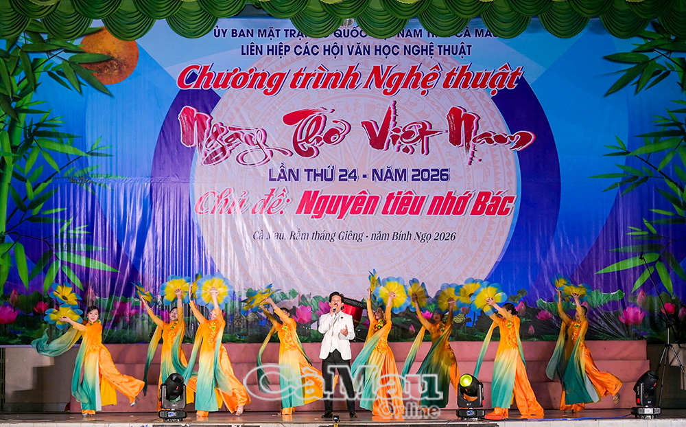 Đêm 3/3 (Rằm tháng Giêng năm Bính Ngọ), Liên hiệp các Hội Văn học Nghệ thuật tỉnh Cà Mau long trọng tổ chức chương trình nghệ thuật ngày thơ Việt Nam lần thứ 24 - năm 2026 với chủ đề “Nguyên tiêu nhớ Bác”. Khi tiết mục cuối cùng của chương trình khép lại, Nghệ nhân Ưu tú (NNƯT) Đỗ Ngọc Ẩn vẫn còn thấy lòng lâng lâng. Mạch cảm xúc theo đó cũng được nối dài trong từng nụ cười, ánh mắt, cái bắt tay của ông với những “khách tri âm” quanh mình.