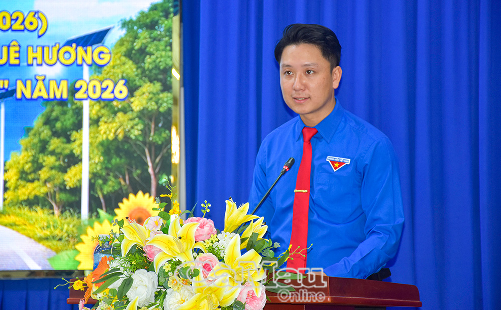 Đồng chí Phạm Tuấn Tài, Phó Chủ tịch Uỷ ban MTTQ Việt Nam tỉnh Cà Mau, Bí thư Tỉnh đoàn,  phát biểu định hướng hoạt động cho tuổi trẻ địa phương.
