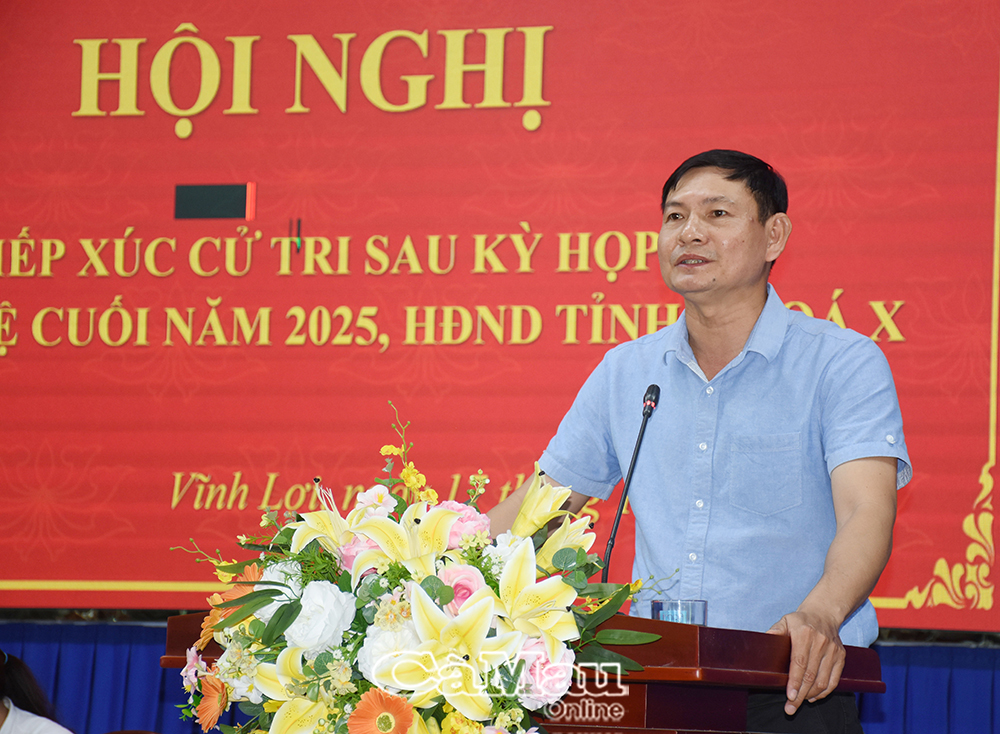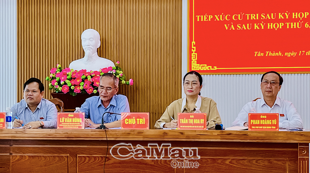 Phát biểu tại buổi tiếp xúc, đồng chí Hồ Thanh Thuỷ, Phó Bí thư Tỉnh uỷ, Chủ tịch Uỷ ban MTTQ Việt Nam tỉnh Cà Mau, cho rằng các ý kiến, kiến nghị của cử tri đã được lãnh đạo địa phương trao đổi, làm rõ. Đối với những nội dung thuộc thẩm quyền Trung ương, đề nghị Tổ đại biểu HĐND tỉnh tiếp thu, ghi nhận và kiến nghị Trung ương sớm xem xét, trả lời cử tri.