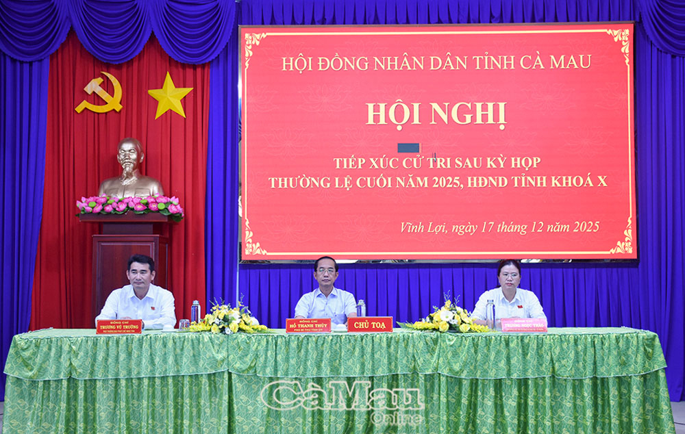 Sáng 17/12, Đoàn đại biểu Quốc hội (ĐBQH) và Hội đồng nhân dân (HĐND) tỉnh Cà Mau đã tổ chức nhiều đoàn tiếp xúc cử tri (TXCT) tại các xã, phường nhằm thông tin đến cử tri kết quả Kỳ họp thứ 10, Quốc hội khoá XV và Kỳ họp cuối năm 2025 HĐND tỉnh khoá X; đồng thời lắng nghe, xem xét giải quyết những vấn đề cử tri quan tâm.