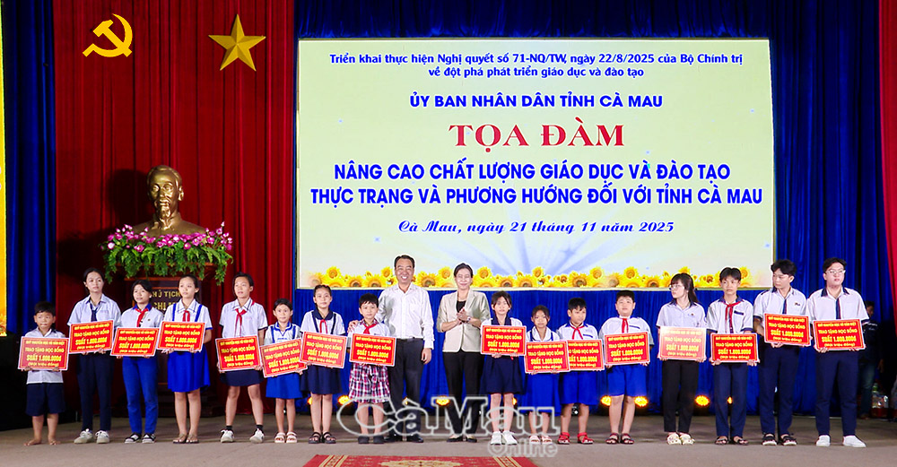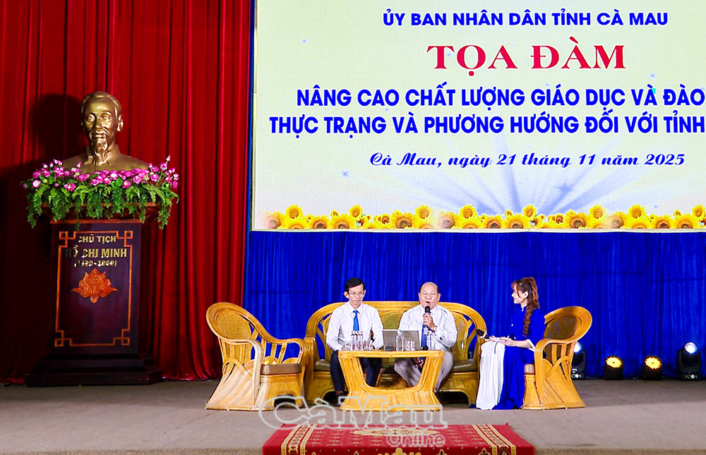 Ngày 21/11, UBND tỉnh Cà Mau tổ chức Toạ đàm “Nâng cao chất lượng giáo dục và đào tạo, thực trạng và phương hướng đối với tỉnh Cà Mau”, nhằm cụ thể hoá Nghị quyết 71 của Bộ Chính trị về đột phá phát triển giáo dục và đào tạo.