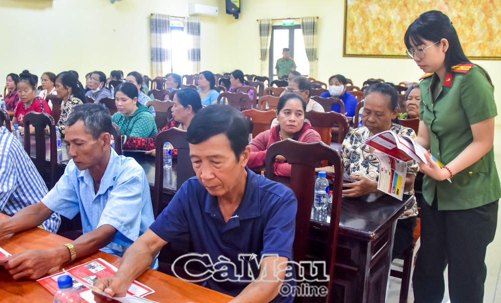 Song song với hoạt động an sinh xã hội, Phòng An ninh điều tra, Công an tỉnh Cà Mau kết hợp tuyên truyền, phổ biến các quy định pháp luật liên quan đến phòng, chống tội phạm, các hành vi mua bán người, sử dụng trái phép vũ khí, vật liệu nổ và hung khí nguy hiểm. Qua đó, góp phần nâng cao nhận thức pháp luật, ý thức cảnh giác và tinh thần tự giác chấp hành pháp luật trong Nhân dân.