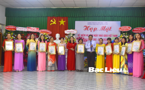 Trong không khí trang nghiêm và xúc động, các đại biểu đã cùng nhau ôn lại truyền thống “Tôn sư trọng đạo” của dân tộc Việt Nam. Dịp này, lãnh đạo thành phố, ngành Giáo dục TP. Bạc Liêu đã tặng quà tri ân cho các nhà giáo đã nghỉ hưu; ngành GD-ĐT TP. Bạc Liêu tuyên dương 39 nhà giáo tiêu biểu; trao bằng khen của Bộ GD-ĐT cho 4 tập thể, 6 cá nhân có thành tích xuất sắc; trao cờ thi đua của UBND tỉnh về thành tích dẫn đầu khối cho các trường tiểu học Lê Lợi và mầm non Hoa Mai; khen thưởng 24 giáo viên và 18 học sinh giỏi cấp tỉnh.
