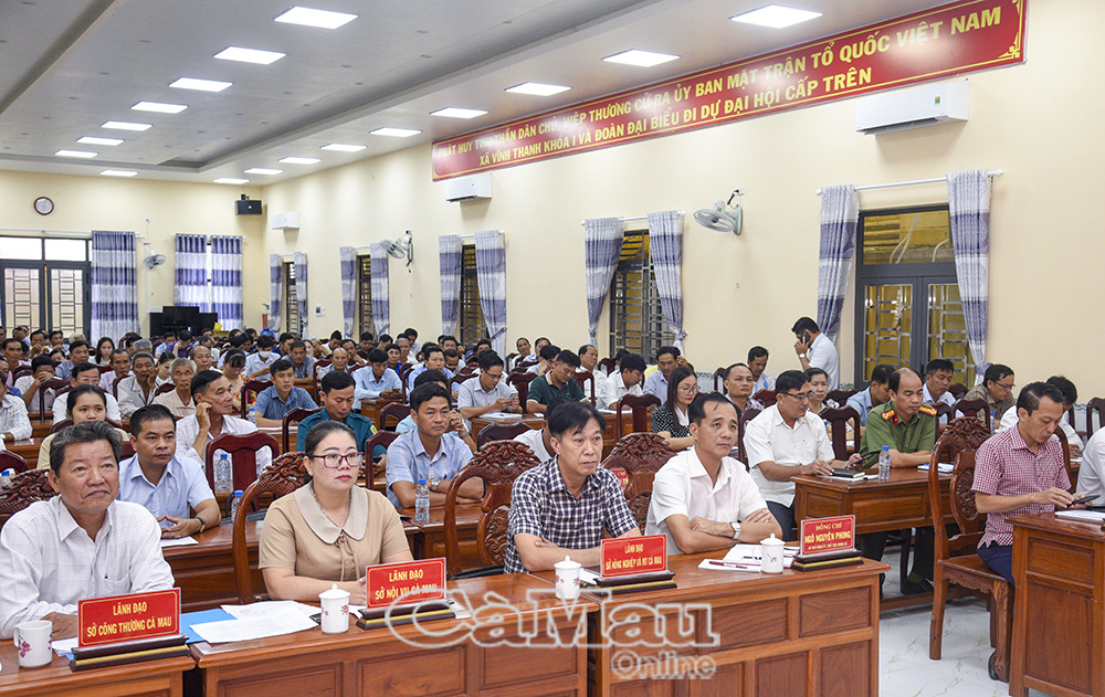 Các đại biểu và hơn 170 cử tri tham dự hội nghị tiếp xúc cử tri tại xã Vĩnh Thanh.