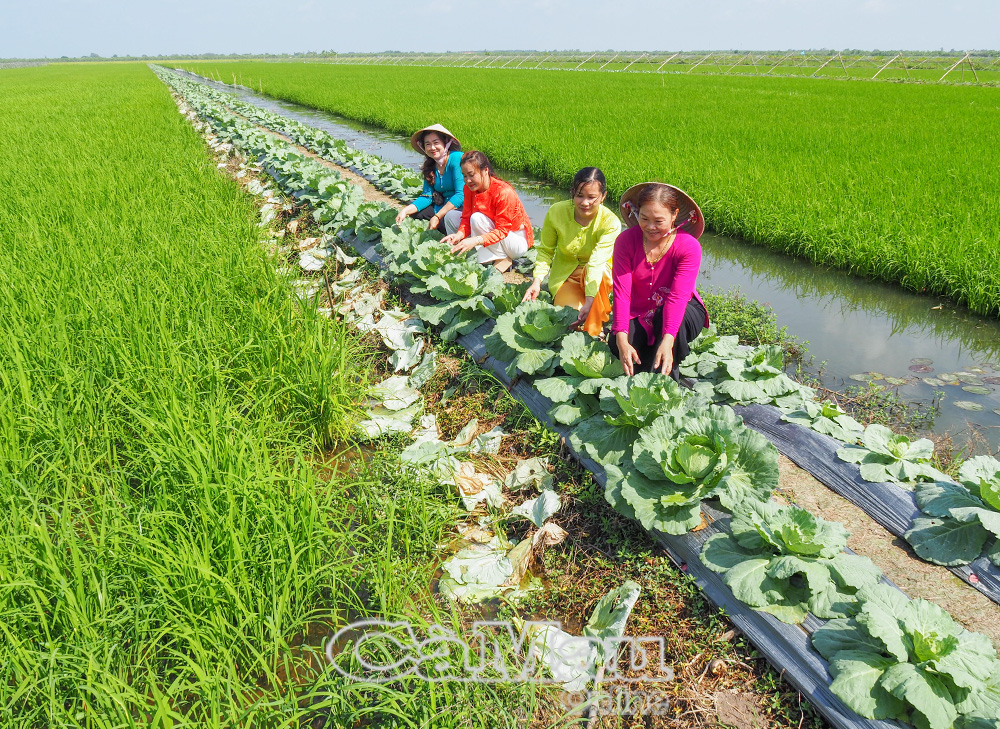 “Đồng ruộng nở hoa”- Chi hội Phụ nữ ấp Cơi 6A, xã Đá Bạc tham quan mô hình đưa màu xuống ruộng của hội viên ấp.